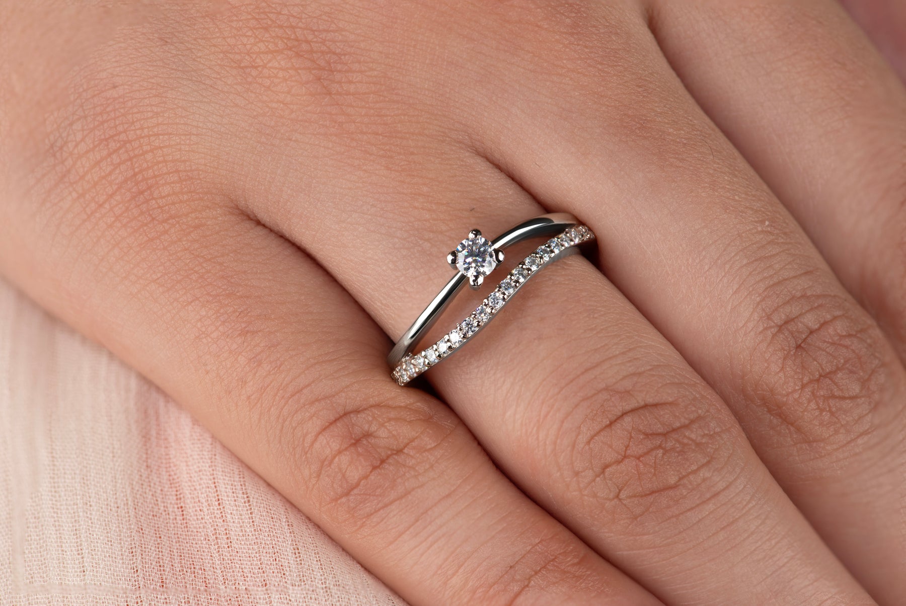 - Center stage goes to a 4mm moissanite stone that shimmers and shines like a tiny star, right on your finger.