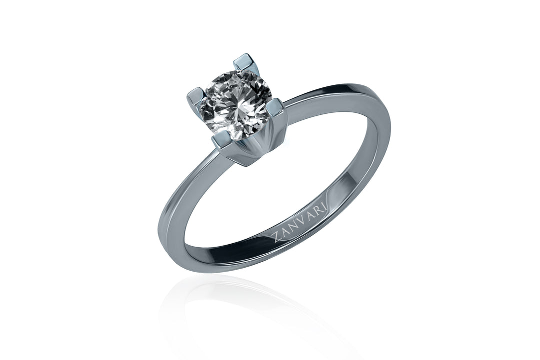 Handcrafted lab-grown diamond solitaire ring in rhodium-plated 925 sterling silver/21K Gold by Zanvari, featuring a brilliant VS1 clarity round diamond set in a classic prong setting. Ethically made in Karachi, Pakistan, blending timeless elegance with modern values.