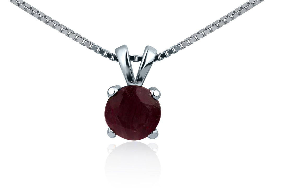 1 carat round red cubic zirconia pendant in white gold plated 925 silver – handcrafted by Zanvari Jewelry