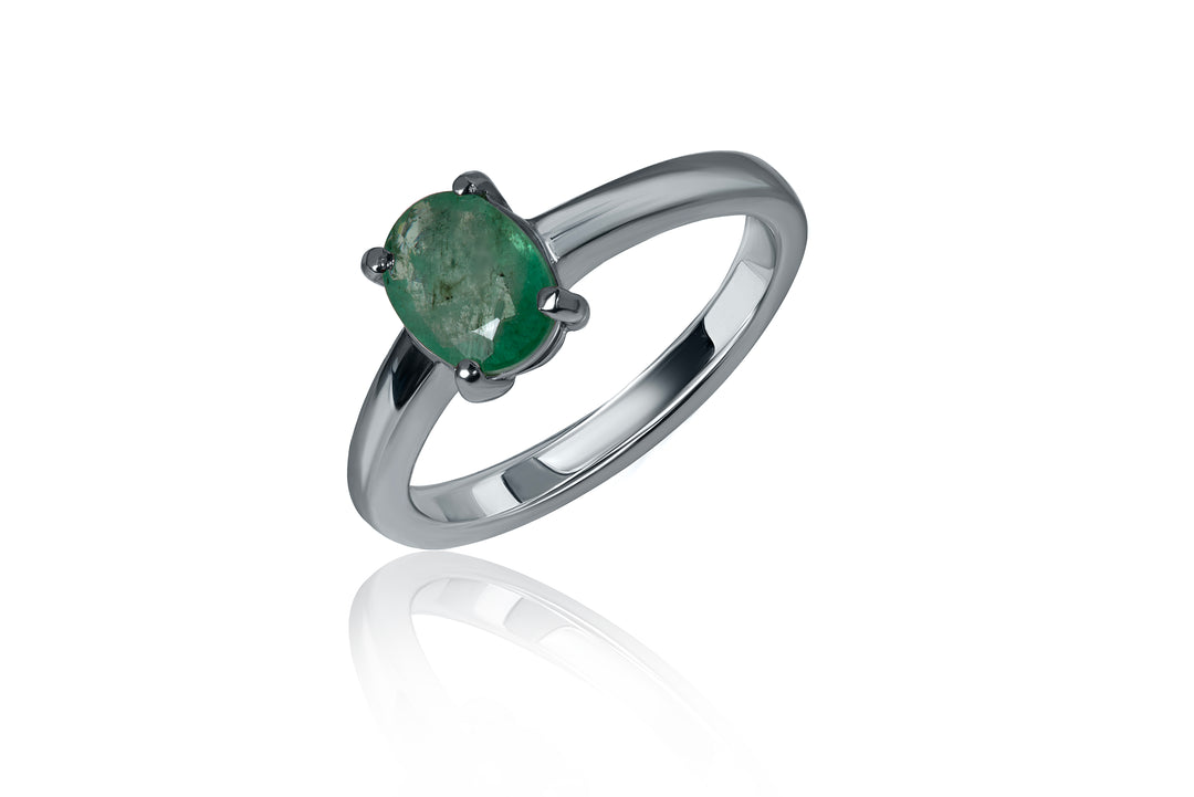 More than just a piece of jewelry; it's a celebration of nature's beauty and the skill of our artisans. Each emerald is carefully selected for its vibrant green color and unique character, ensuring that no two pieces are alike. Set in high-quality sterling silver and finished with rhodium plating, this ring offers both durability and a polished appearance.